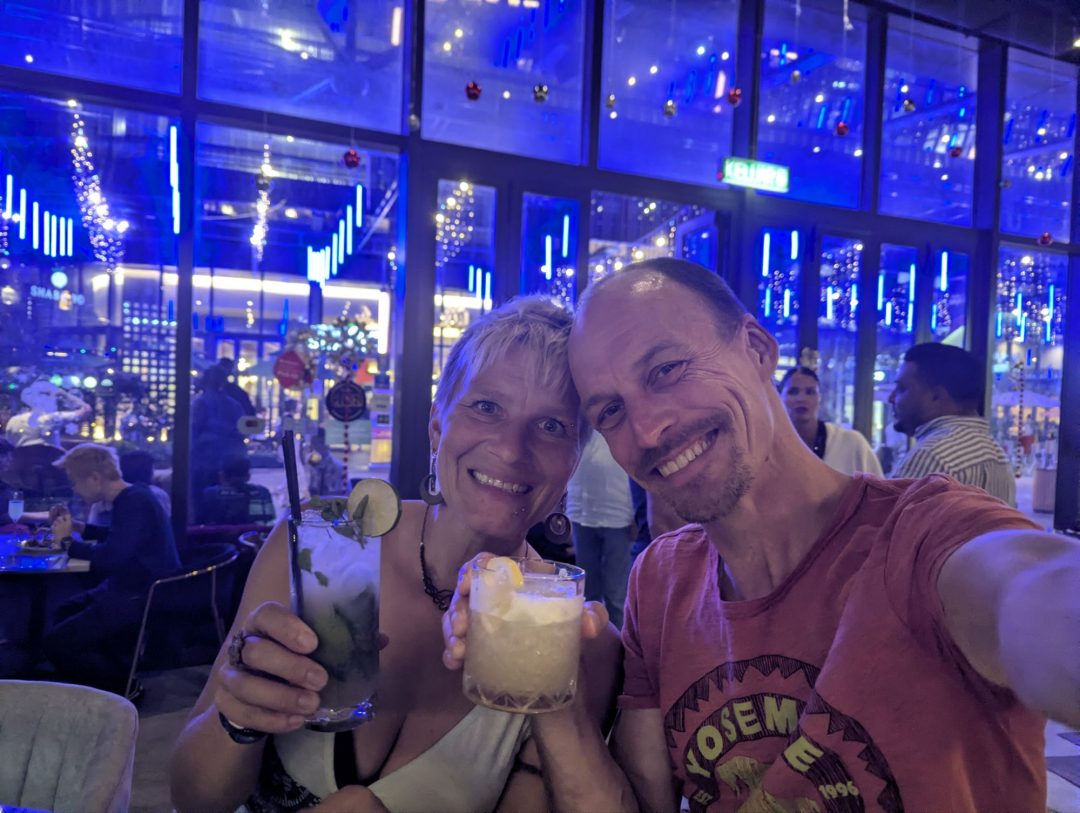 From Merapoh we took a train and a long distance bus back to Kuala Lumpur to celebrate New Years Eve. We found some interesting “German” advertisement πAnd the remnants of Christmas in Asian styleπAnd a nice Mediterranean restaurant with delicious food, live music …… and a good cocktail deal π₯³On the roof terrace of one of the many malls, we enjoyed a funny Asian concert πΆThe Maybank tower displayed a sand clock…… and at midnight there were some but not too crazy fireworks πWe met a lot of nice people π€Got a bit confused while searching for another party spot πBut eventually found the main party area which reminded me quite a bit of the Reeperbahn in Hamburg but in a different style ππΊThis was our next aquarium without any outside windows for the new years eve time π