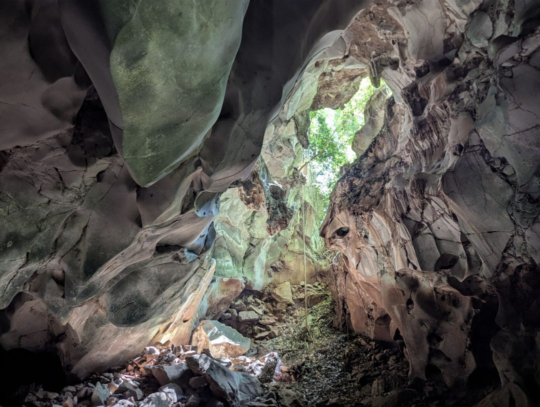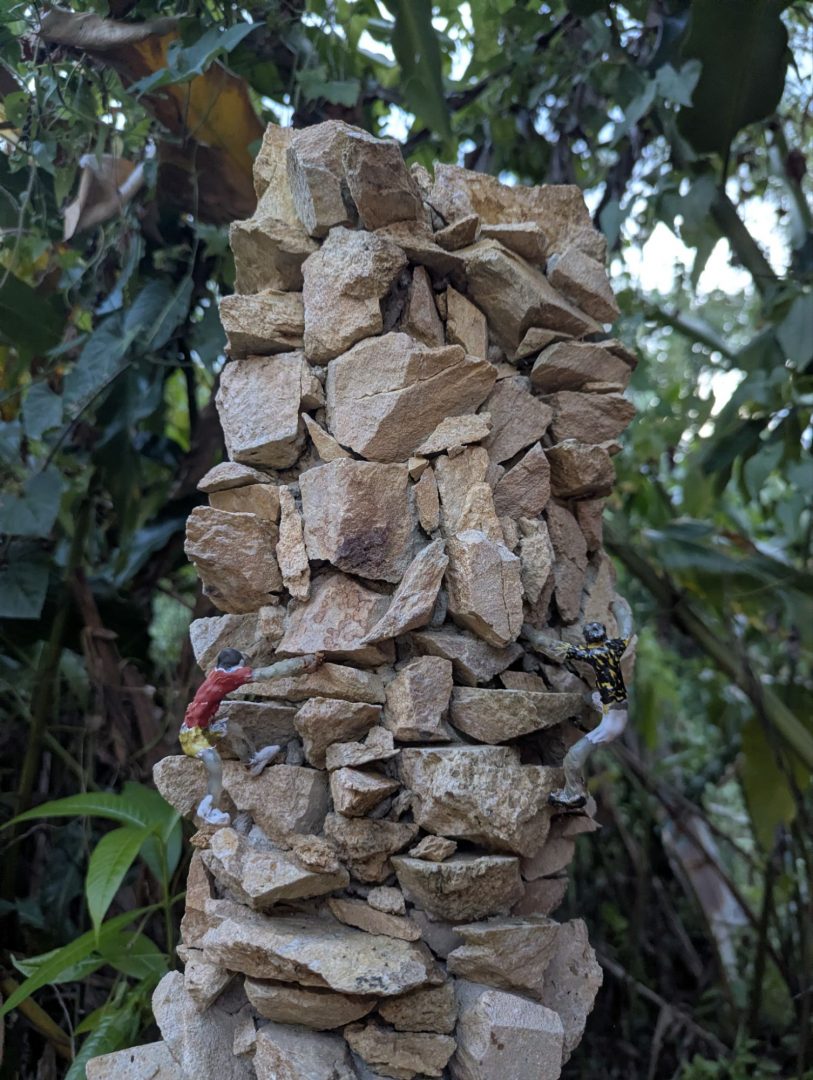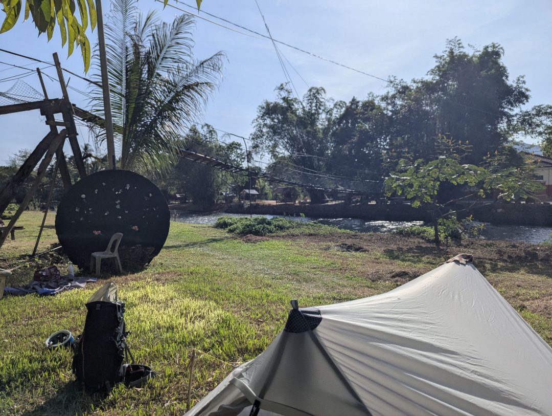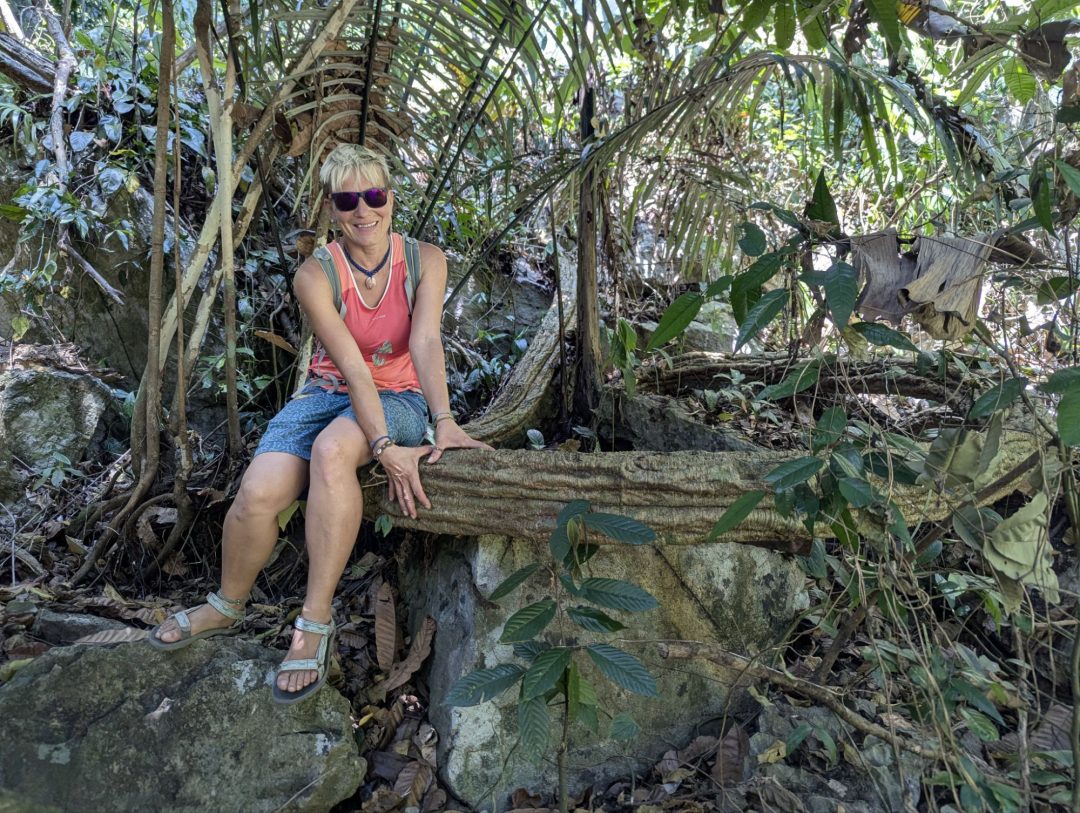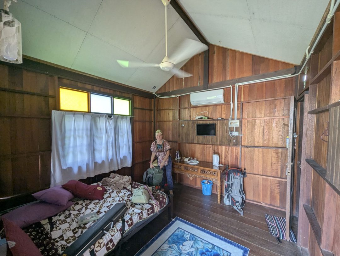 We went to Baling to try the next climbing area called Lubuk Pedati (see it on thecrag.com). After one night at the official camp spot right next to the noisy small road, we moved our tent to the other side of the river, directly in front of the climbing crag. It was a beautiful place and our only neighbor was happy with us camping there.The bridge connecting both sides of the river was broken but the locals already started repairing it. Crossing the river by foot was possible through the waist deep water.The routes were very awesome! Especially the trees growing next to the crag and connecting to the rock looked fantastic. We did a lot of 3D climbing and even encountered a hornet that did bite Racki before we moved it away from the climbing route. The weather was super nice. No rain at all.One day, we did a small hike and visited some of the caves.Beautiful stones.And alien artifacts.And we met this huge tree. Racki is standing beside it to indicate its hugeness.One of the fattest lianes we had met so far.During our time in Baling, I got pretty ill and could not climb for more than a week. So we moved from our tent to a bungalow.And we found the cheapest accommodation for about 11 Euro per night.The protection foil has to stay, of course πThe locals were friendly and interested as always. Here Racki is playing Badminton with local girls π€Every evening we went to one of the cheap authentic restaurants and for some meeting western tourists was quite a highlight. So there were a lot of selfies and Instagram videos. This family was especially super nice. They even invited us to our last dinner before we left Baling again.