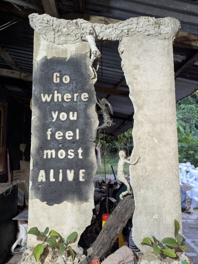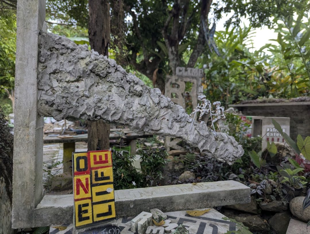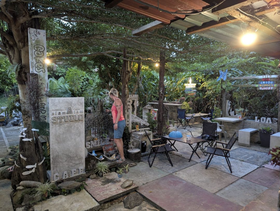 We went to Baling for rock climbing, but there was a lot more to see. This was a projection on the main rock cliff.There were beautiful graffiti arts.And while taking a walk, we came across this little cafe. It was closed but still the owners allowed us to have a look around. A lot of the art was about mountaineering and climbing.